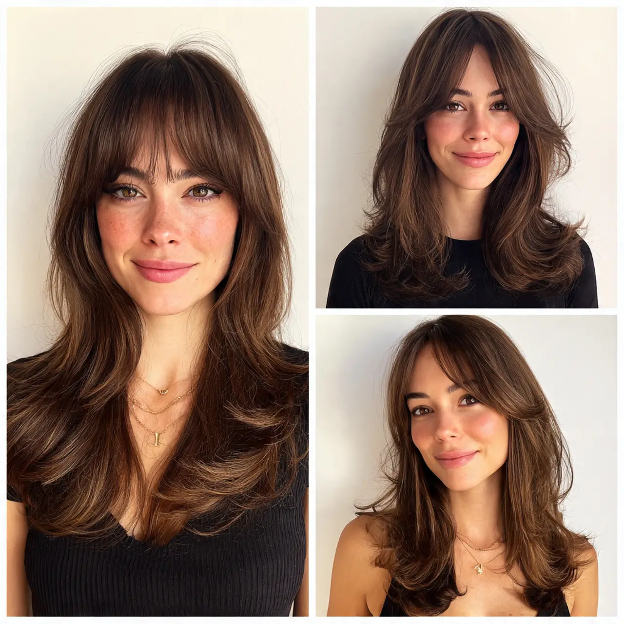 For round faces, curtain bangs should be kept longer rather than short. Long curtain bangs blend smoothly into the butterfly layers and give the haircut a soft, modern feel. They are also easy to style and grow out.