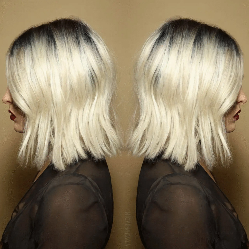For a dramatic yet subtle look, platinum blonde tips on black hair can be stunning. The icy blonde highlights create a sharp contrast with your black roots, giving the hair a striking, fashion-forward finish. Don’t worry—it’s still subtle enough to wear day-to-day.