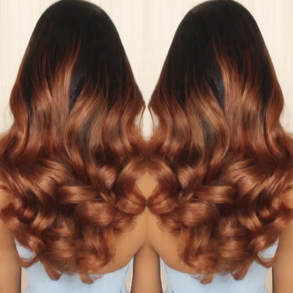 - Ask for a subtle copper balayage starting at the tips.