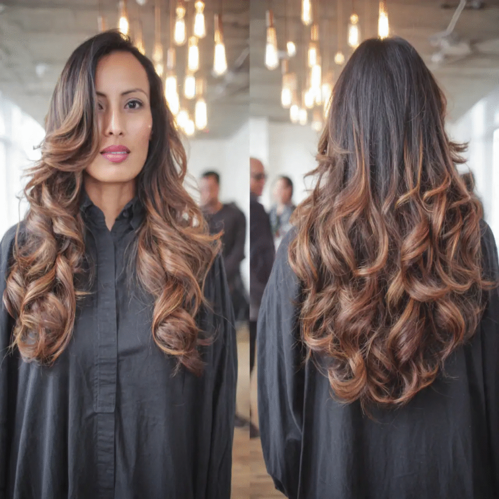 Honey caramel balayage offers the perfect balance of sweetness and warmth. The golden tones melt seamlessly into black hair, giving it a soft, glowing look.